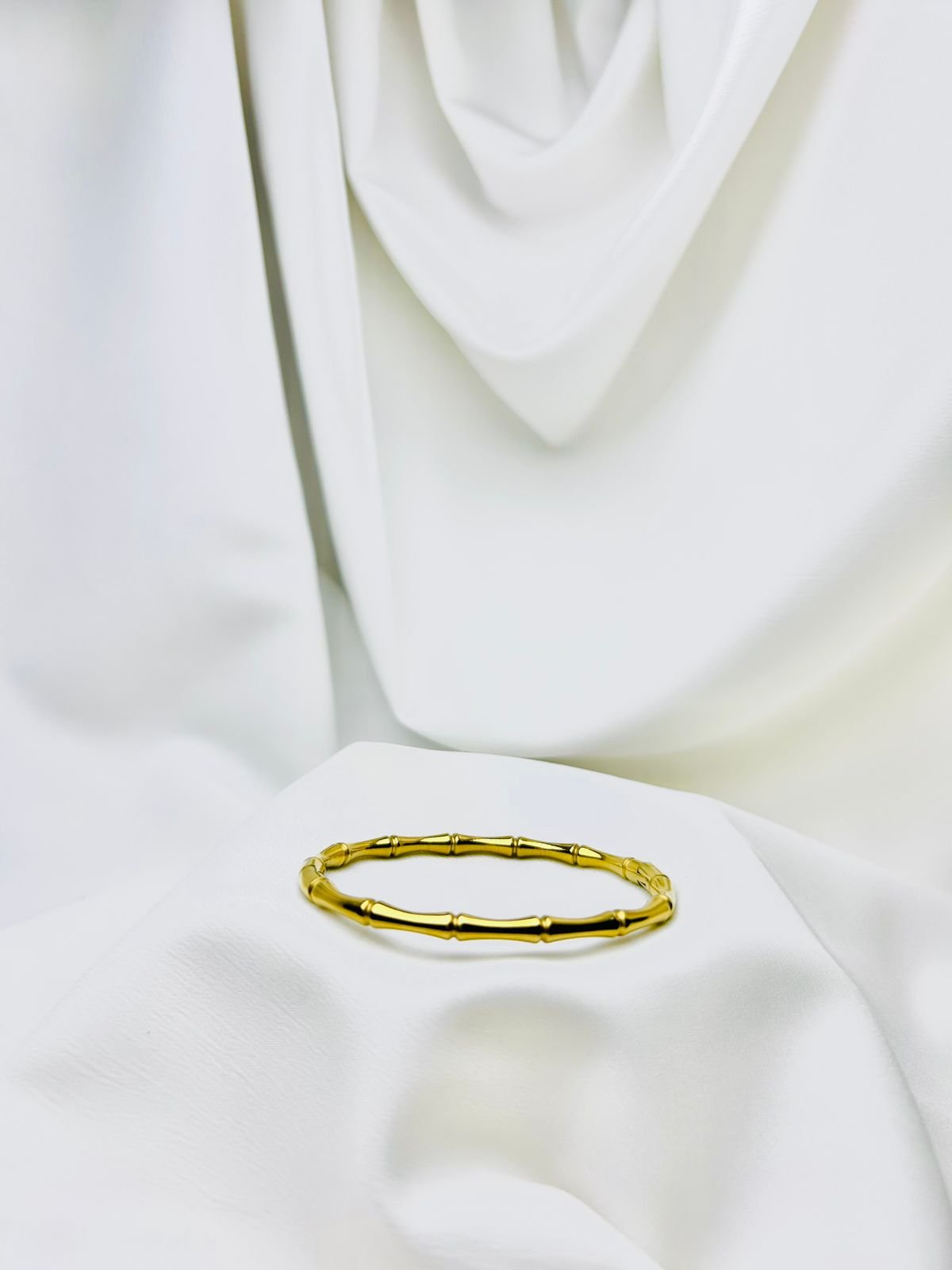 Elegant gold bamboo-style bangle bracelet, crafted with sleek segmented detailing that